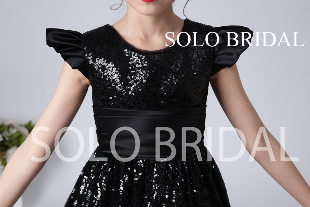 Black Sequin Flower Girl Dress