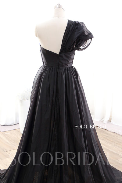 Black Ball Gown One Shoulder Organza Wedding Dress DPP_0021