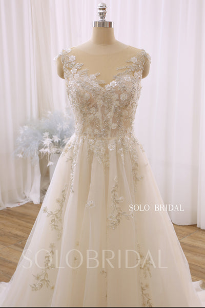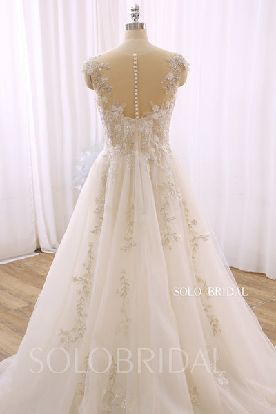 Ivory Illusion Neck Silver Lace A Line Wedding Dress 724A3593