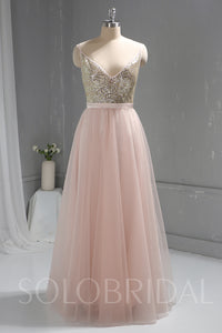 Pink Sequin Bodice Tulle Skirt Bridesmaid Prom Dress