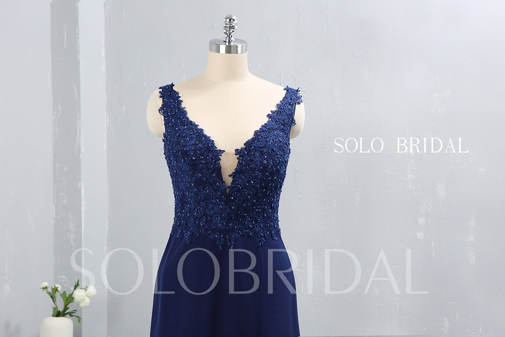 Royal Blue Crepe V Neckline Bridesmaid Dress